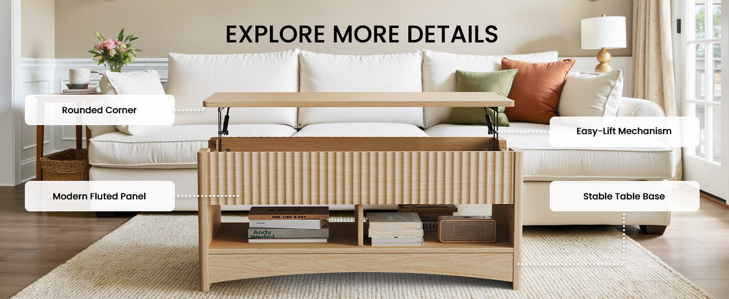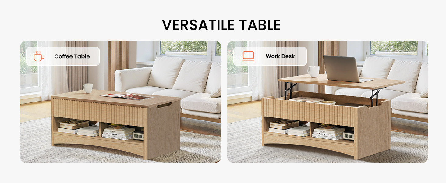 • Lift-Top Versatility-Easily transforms from a stylish coffee table to a workspace or dining area with the lift-up tabletop.