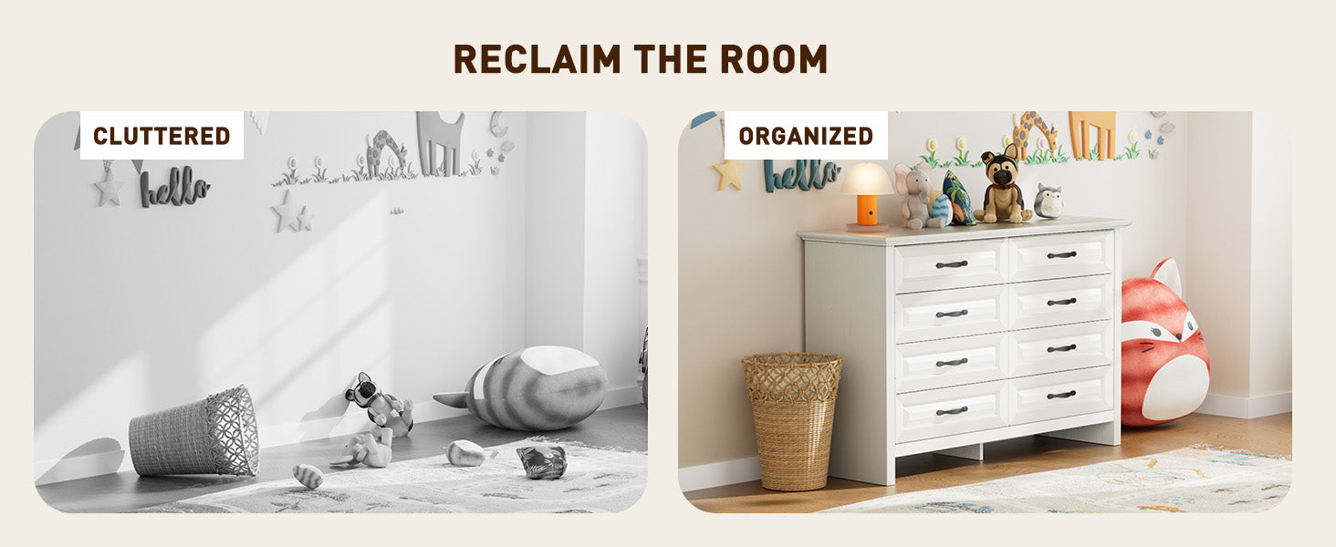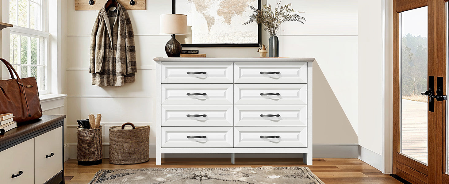 BAYCLARA Pearl White Dresser,5–8 Drawer Storage Chest