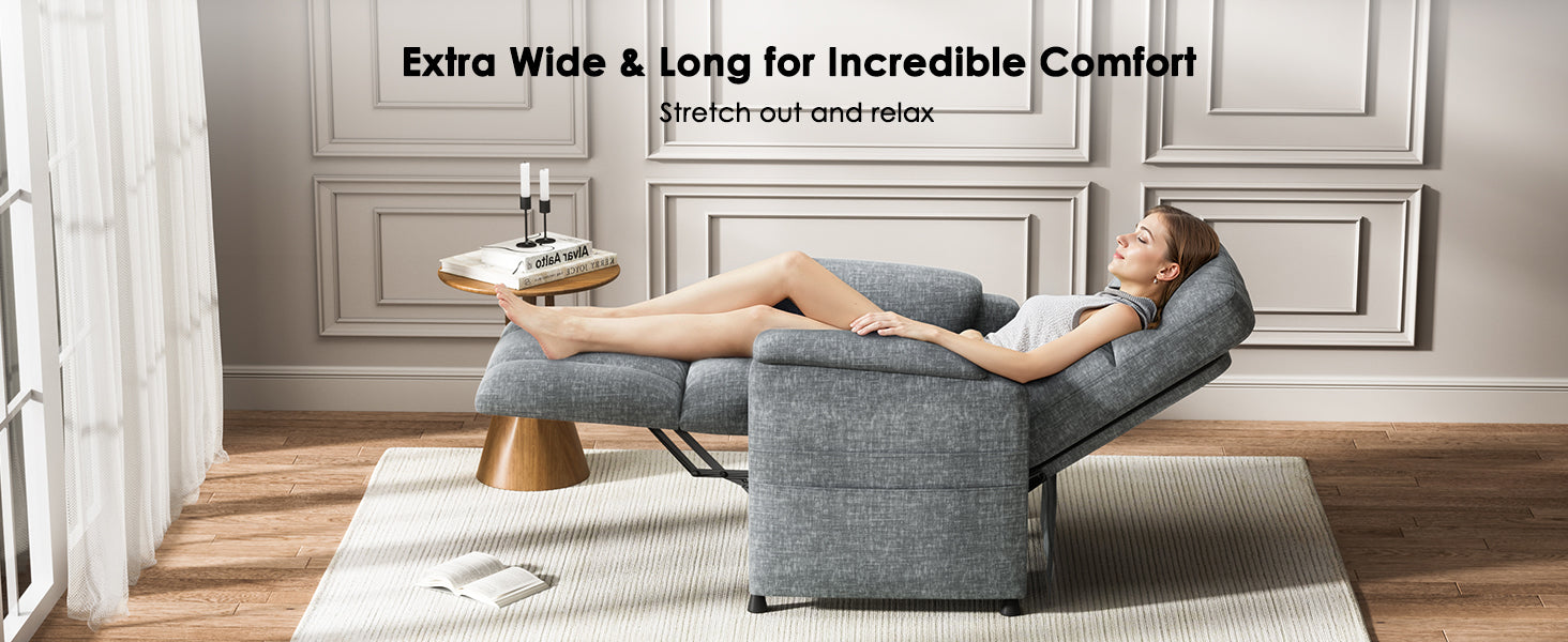 • One-Button Stepless Recline – Easily adjust backrest from 105° to 165° with a single button. Silent motor ensures smooth, noise-free operation for reading, movies, or napping.
