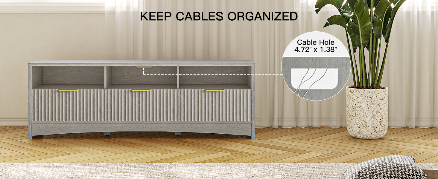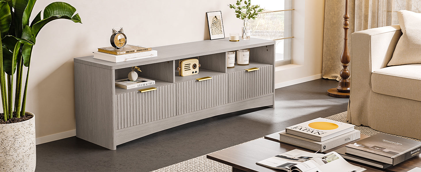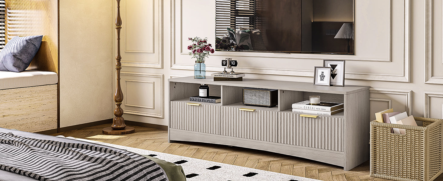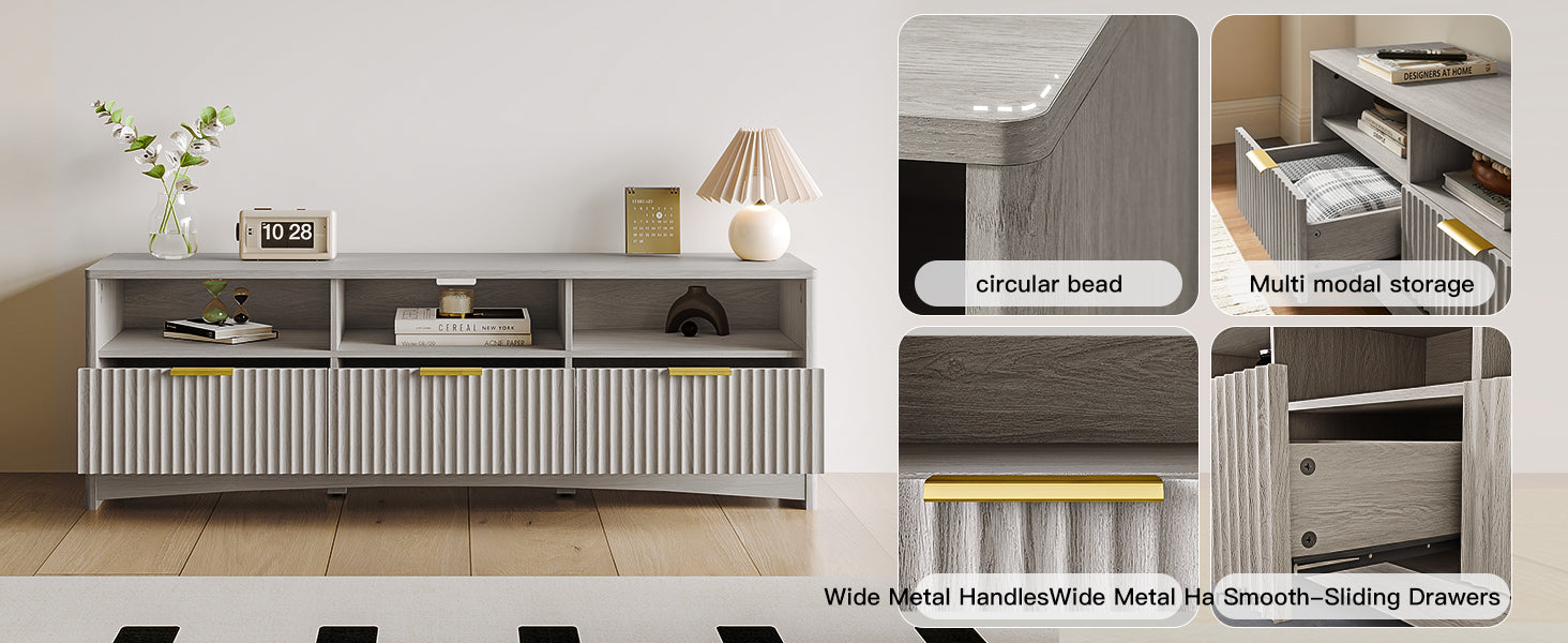 • Smart 3-Tier Storage-Features open shelves for media devices and three drawers for remotes, cables, and accessories—keeping everything organized and clutter-free.